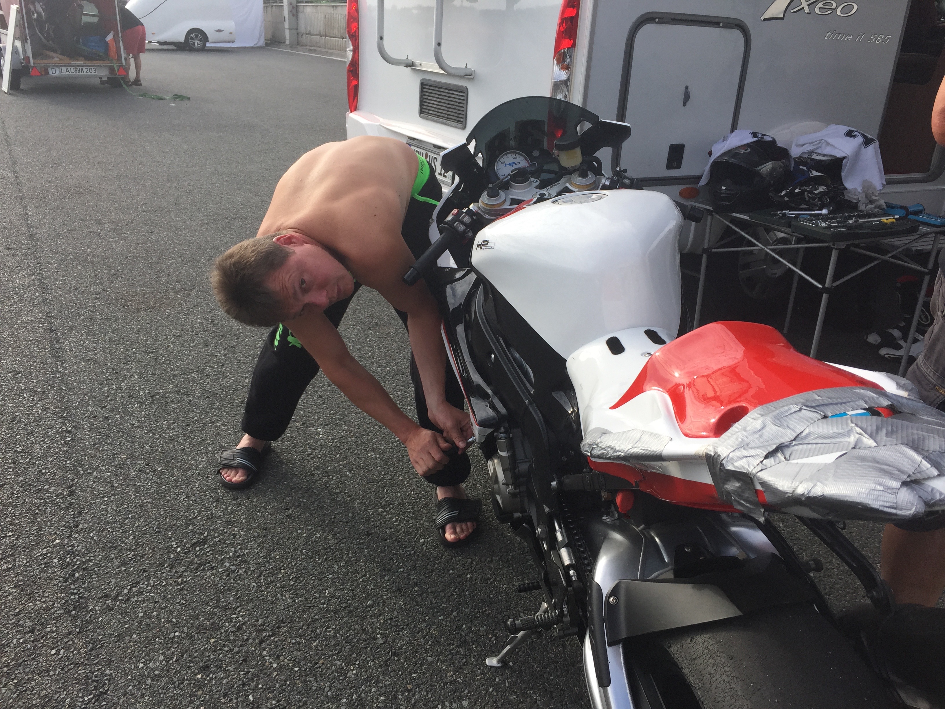 Einmal Tchechien und zurück, bitte mit Sonne. Hat geklappt. Puuh, die Fahrt war ganz schön lange. Hat sich aber trotzdem alles gelohnt. Super tolle Rennstrecke in Brno, sehr gute Veranstaltung, ebenso die Verpflegung. Deutlich besser ist die Performance der beide Instruierten geworden. Geneigtes Haupt nicht nur vorm Handy, sondern auch auf dem Moped, was die nachfolgenden Bilder beweisen.
