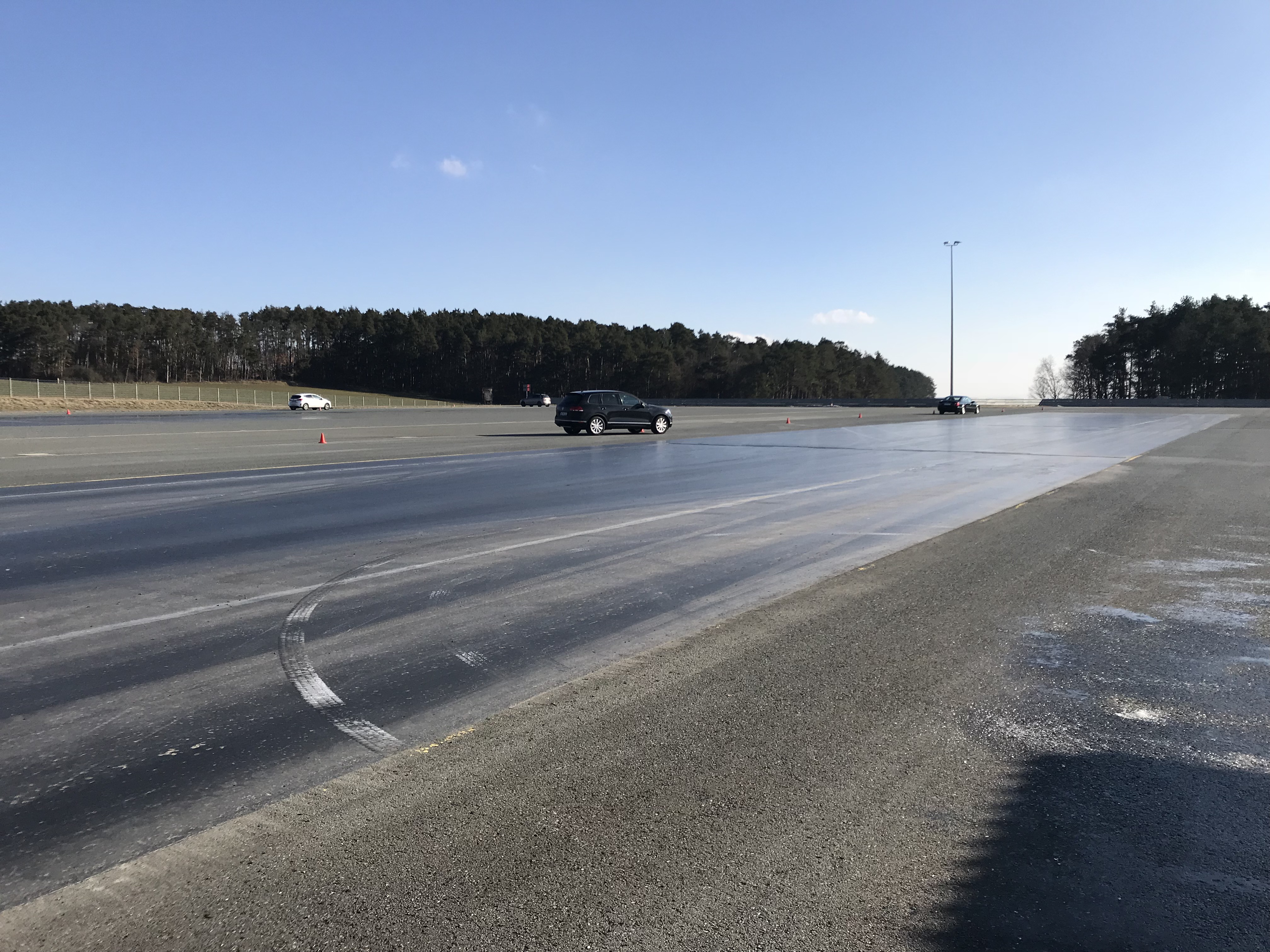 Und ziemlich flott geht es weiter, das klassische Naserarbeitstempo. Wir starten zum Aufwachen nach der Mittagspause mit einem Handlingparcours. Auch hier klick drauf. Das Nachmittagsprogramm hatte es richtig in sich. Schönerweise war die gesamte Anlage zu Bewässern, was kein Standart ist bei solch niedrigen Temperaturen. Aber das schöne Wetter macht es auch möglich, das nicht überall Glatteis entsteht. Modul Gefälle war sehr spannend, aber heiß erwartet ist natürlich die Dynamikplatte (klick). Und zu guter Letzt drehen wir noch mal richtig am Rad. Am Lenkrad und am Antriebsrad.