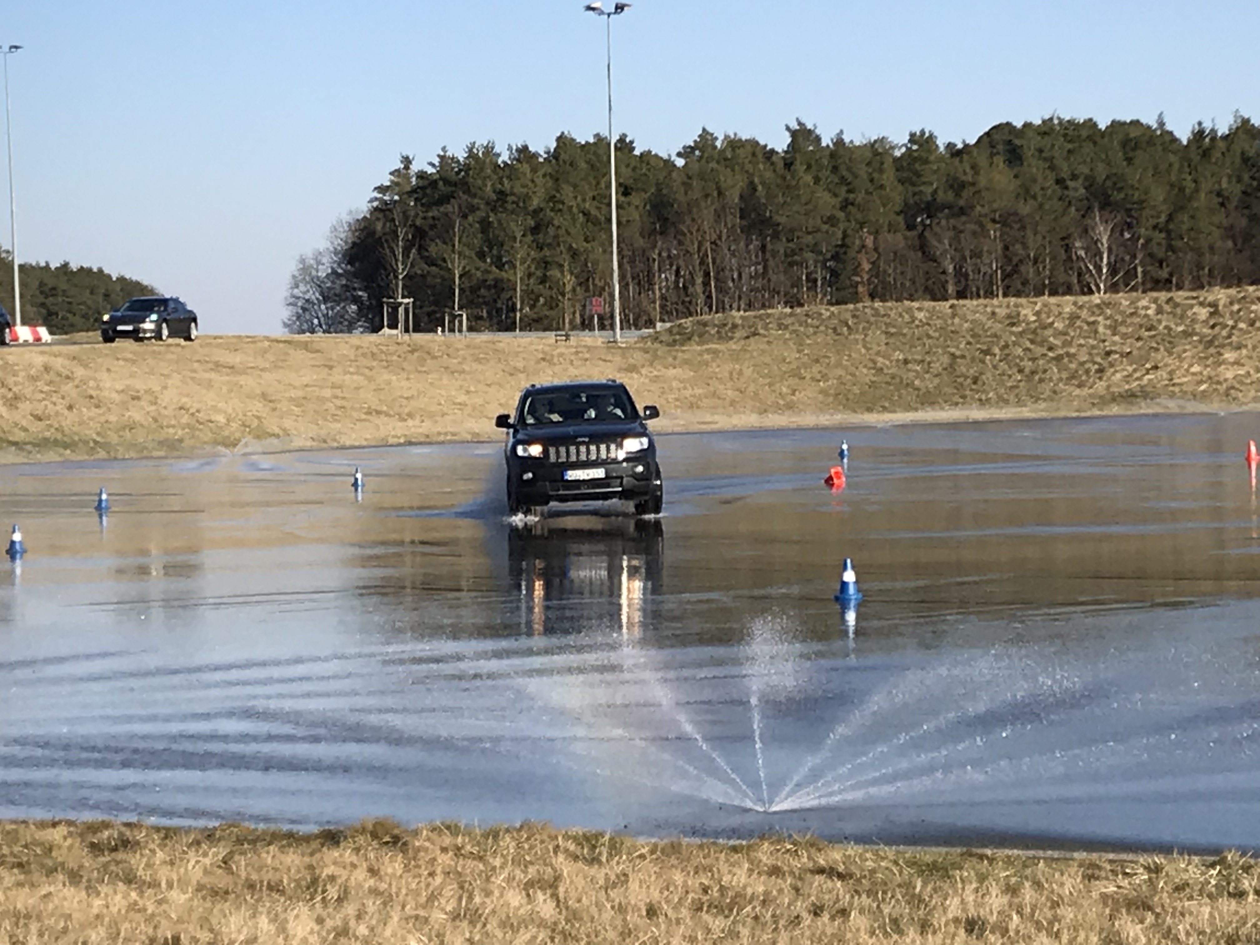 Fleißig gelenkt geht es in das nächste Wunschthema der Teilnehmer über, dem Bremsen. Wie unterschiedlich bremsen die Fahrzeuge, Transporter, altes Auto, neues Auto, breite und schmale Reifen und auch noch unterschiedliche Untergründe. Erst unter allen vier Räderrn und dann unterschiedlichen Untergrund nur auf einer Seite, MÜ Split, nicht nur in Fachkreisen so genannt.